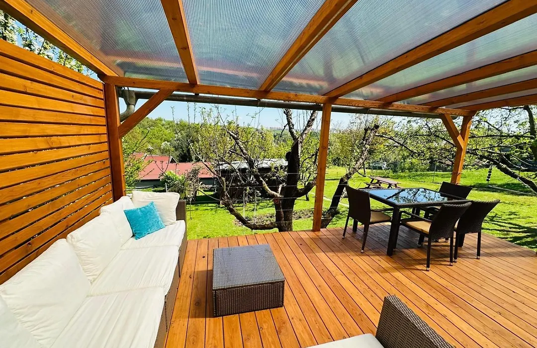 Glamping Prokop Appartement heeft uitzicht op de tuin en bestaat uit een terras en een zitruimte. 1 badkamer wordt aangeboden aan gasten. Er is ook een apart toilet en een douche.